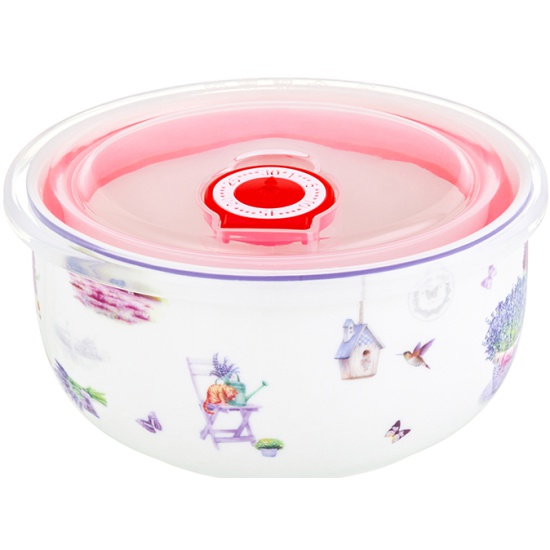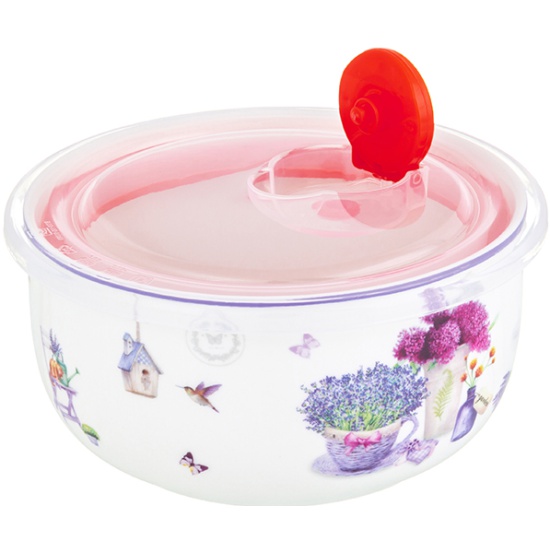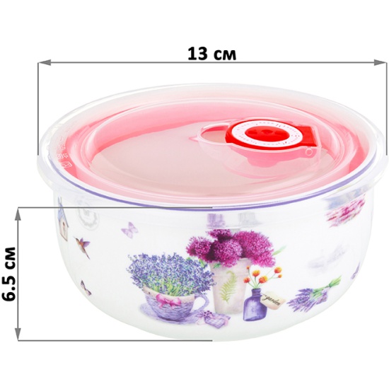 Салатник 560 мл 13х13х6,5 см Elan Gallery Лаванда с пластиковой крышкой с силиконовым уплотнителем 420493 Elan