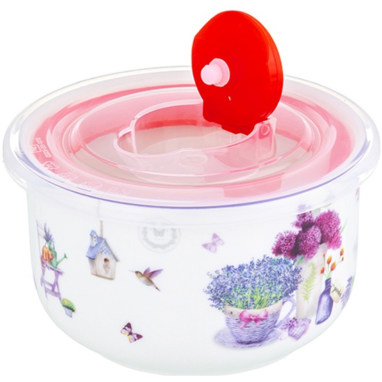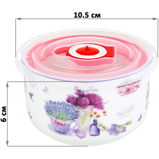 Салатник 260 мл 10,5х10,5х6 см Elan Gallery Лаванда с пластиковой крышкой с силиконовым уплотнителем 420489 Elan