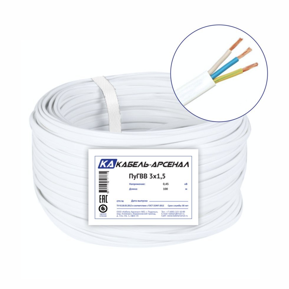 Провод пугвв кабель-арсенал 3х1,5 гост - 100 м 40074
