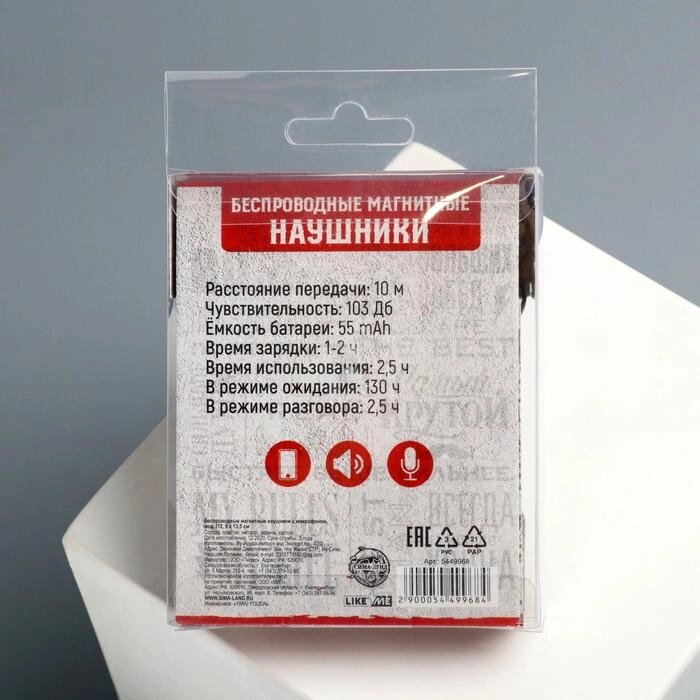 Беспроводные магнитные наушники вакуумные с микрофоном Real man, 12 ,9 х 13,5 см