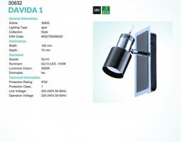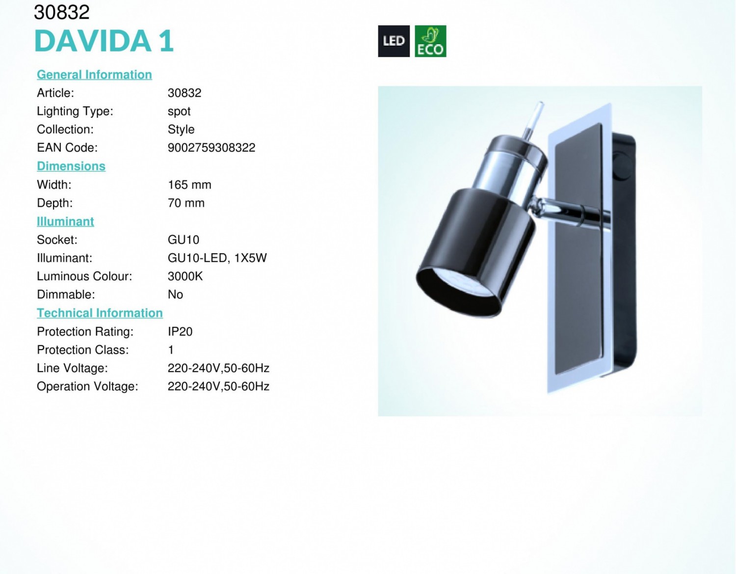 Светильник поворотный спот Eglo 30832 DAVIDA 1