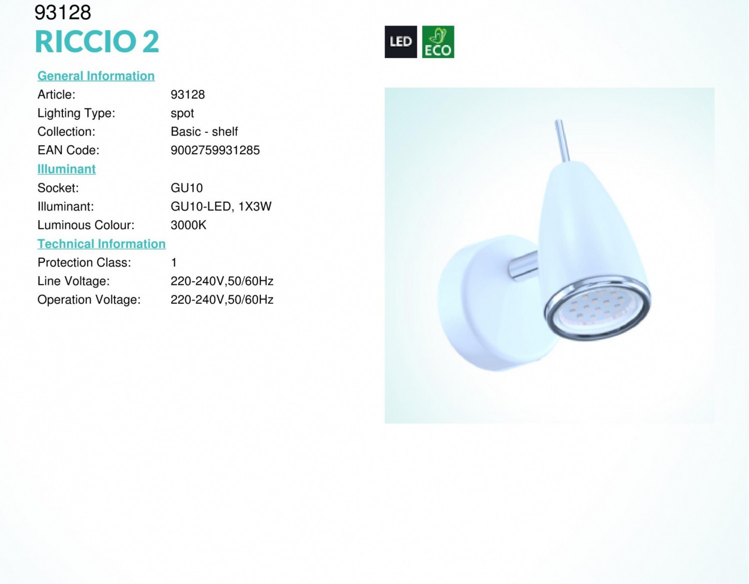 • Дополнительно Светодиодный спот RICCIO 2