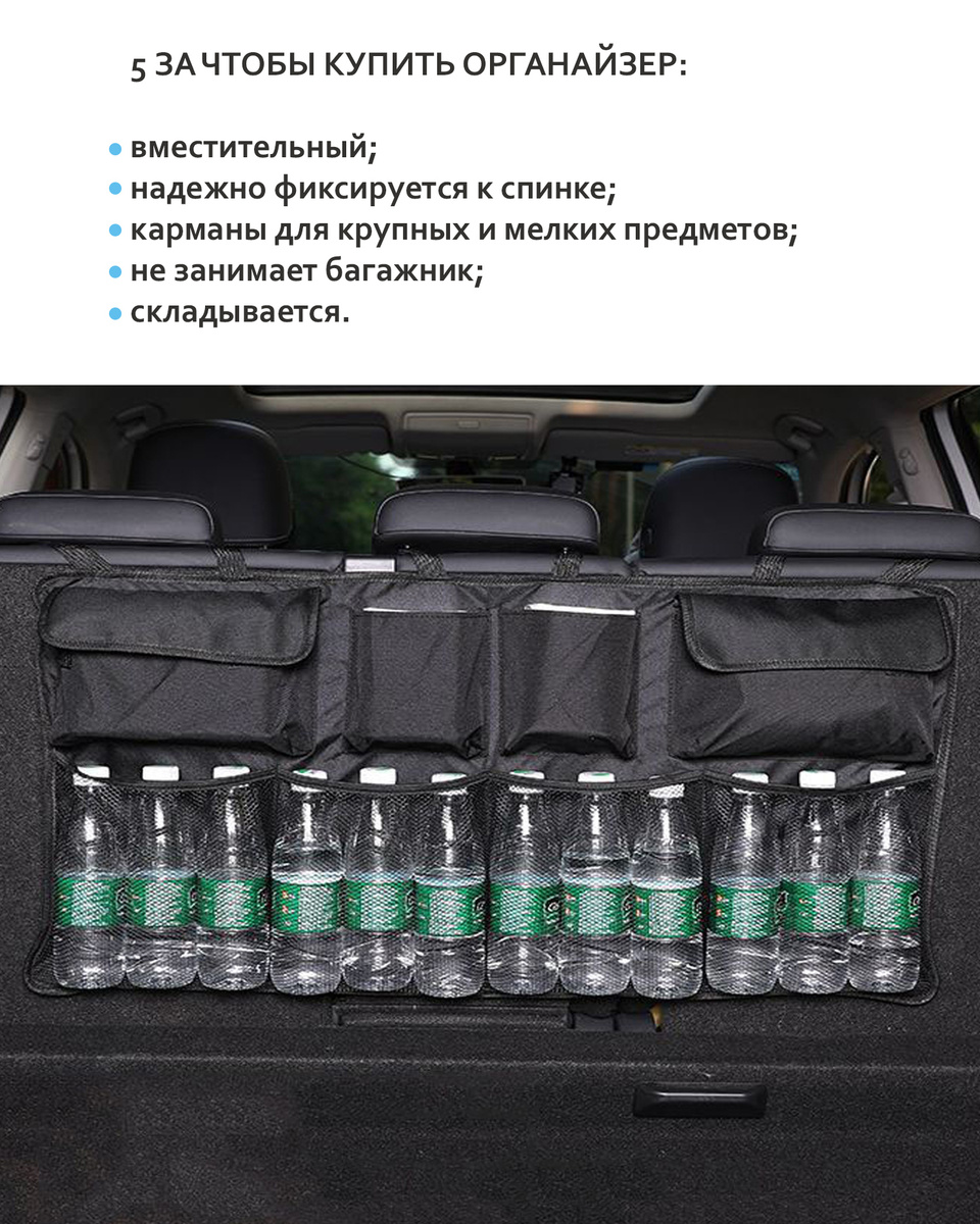 Органайзер на сиденье автомобиля в багажник с карманами Avocado+ / органайзер для автомобиля / подарок мужчине / система хранения