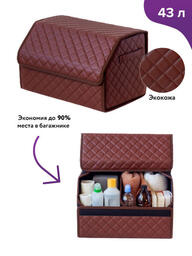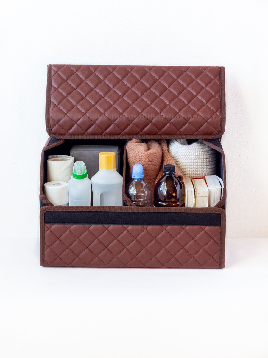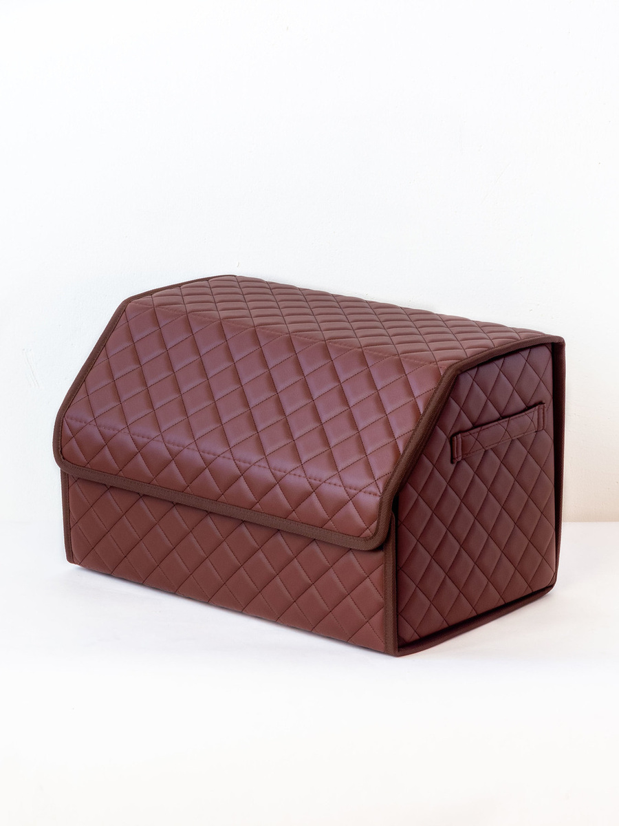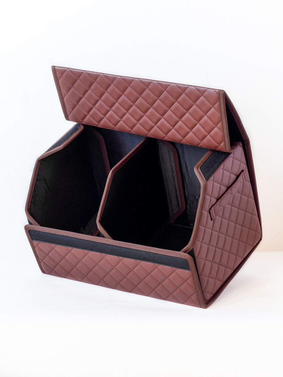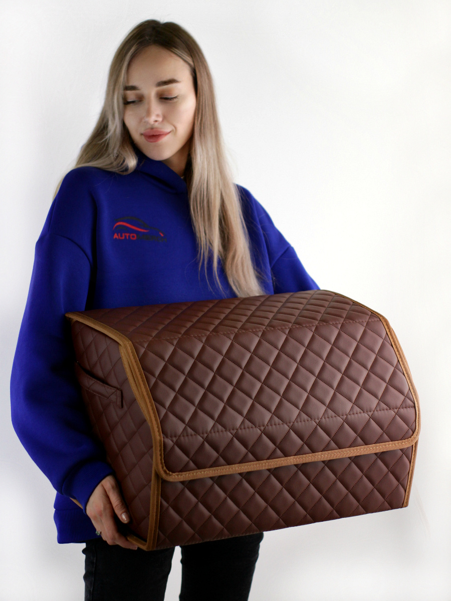 AutoMerch / Органайзер в багажник автомобиля / органайзер для автомобиля / сумка-органайзер в багажник / органайзер автомобильный из экокожи / сумка в багажник / экокожа / кофр М 48х30х30 ( цвет коричневый )