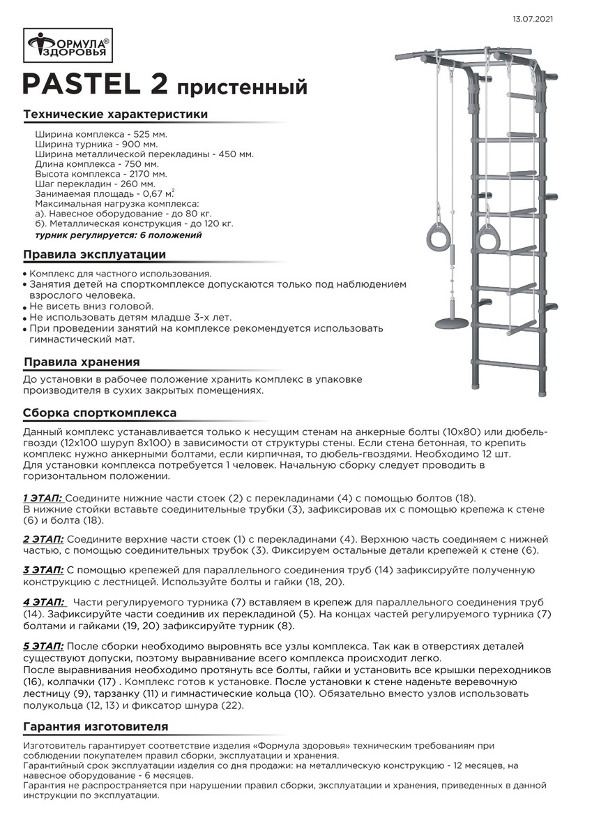 Детский спортивный комплекс Pastel 2 Формула здоровья white/grey