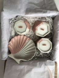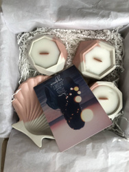 Подарочный набор их трёх свечей и подставки ракушки для украшений бело-пудрового цвета