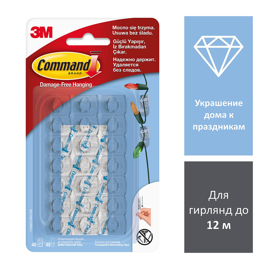 Клипса Command™ (17026CLR40) для гирлянд прозрачная самоклеящаяся (40 шт.)