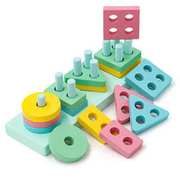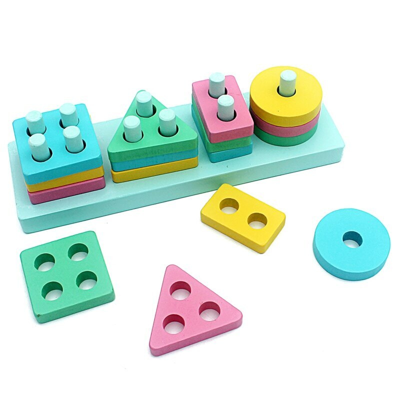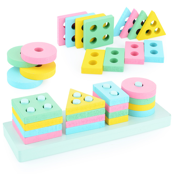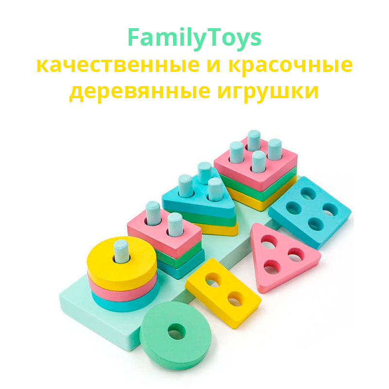 Деревянная развивающая Игра головоломка по методике Монтессори, FamilyToys / сортер "Геометрические фигуры": квадрат, круг, треугольник, прямоугольник UM422