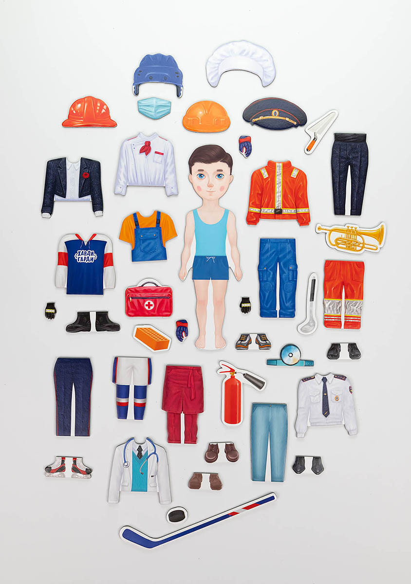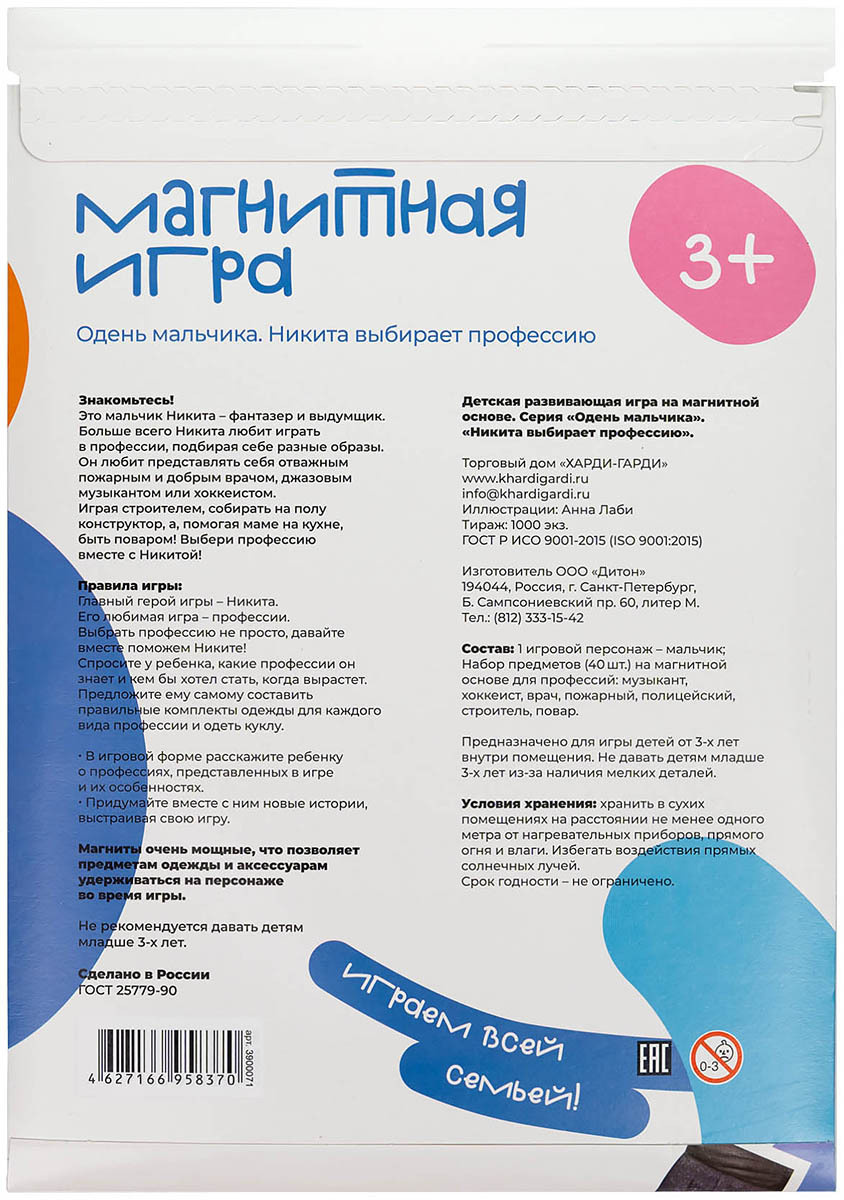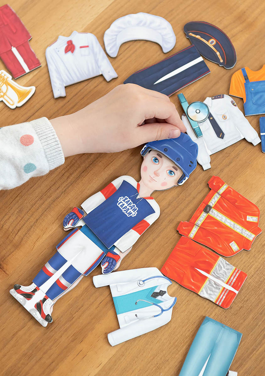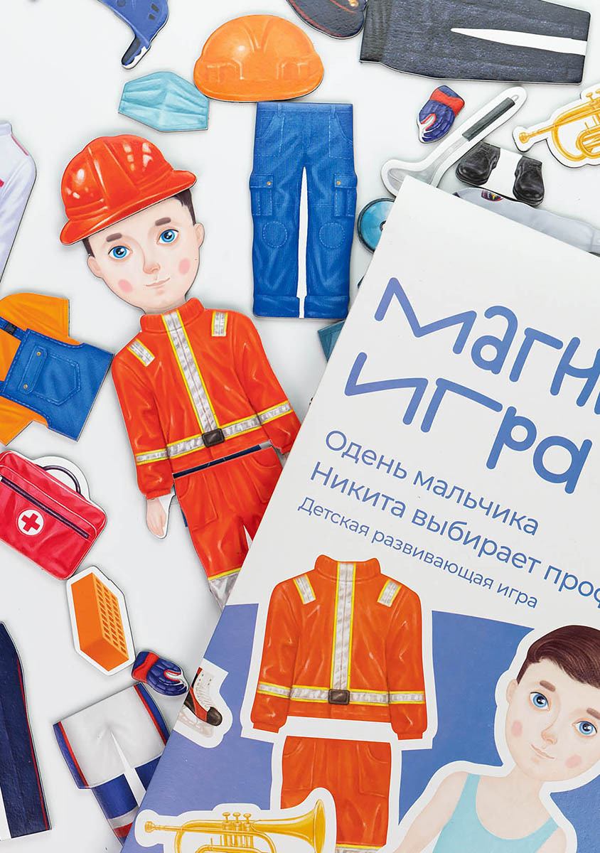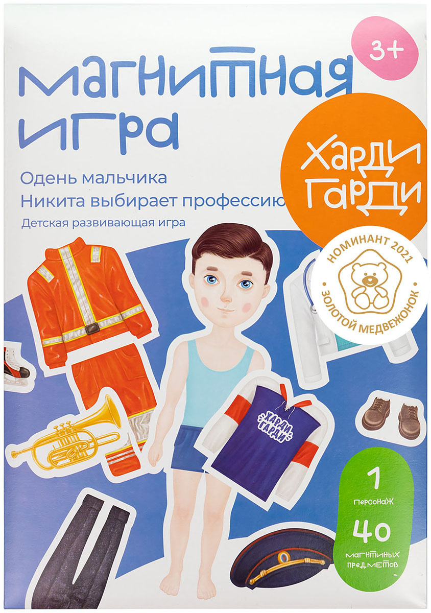 Развивающая магнитная настольная игра для детей, одень мальчика "Никита выбирает профессию", ХардиГарди