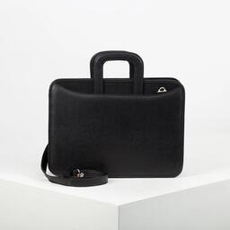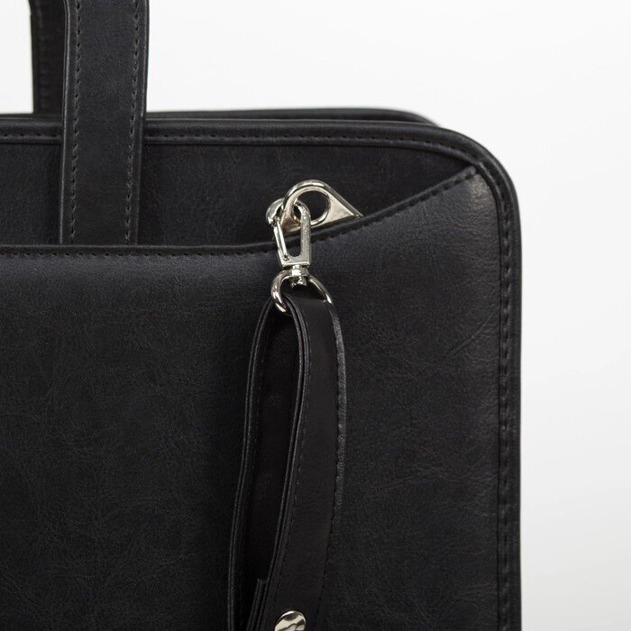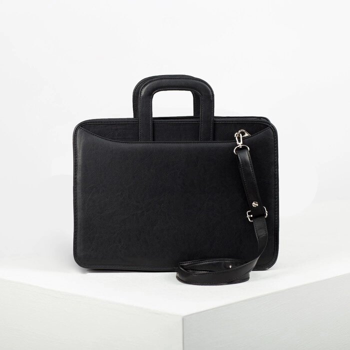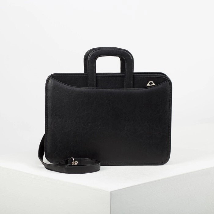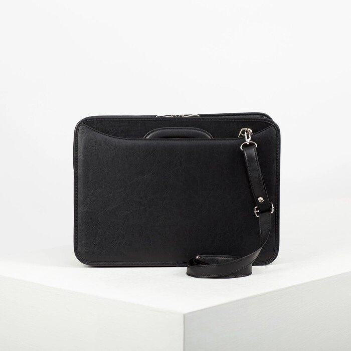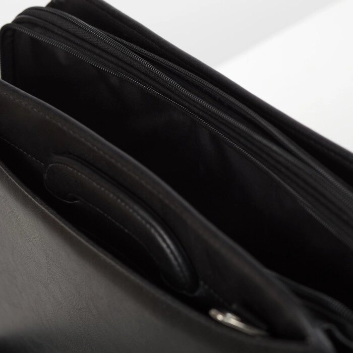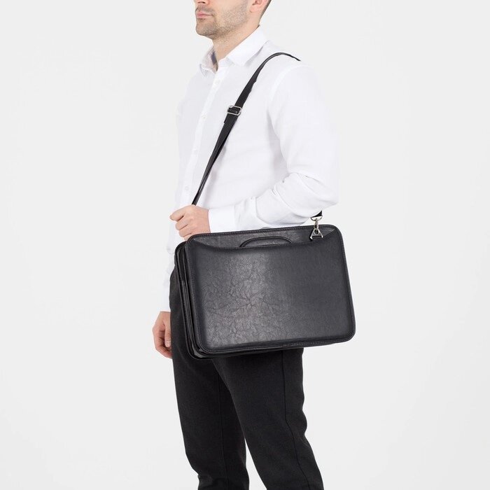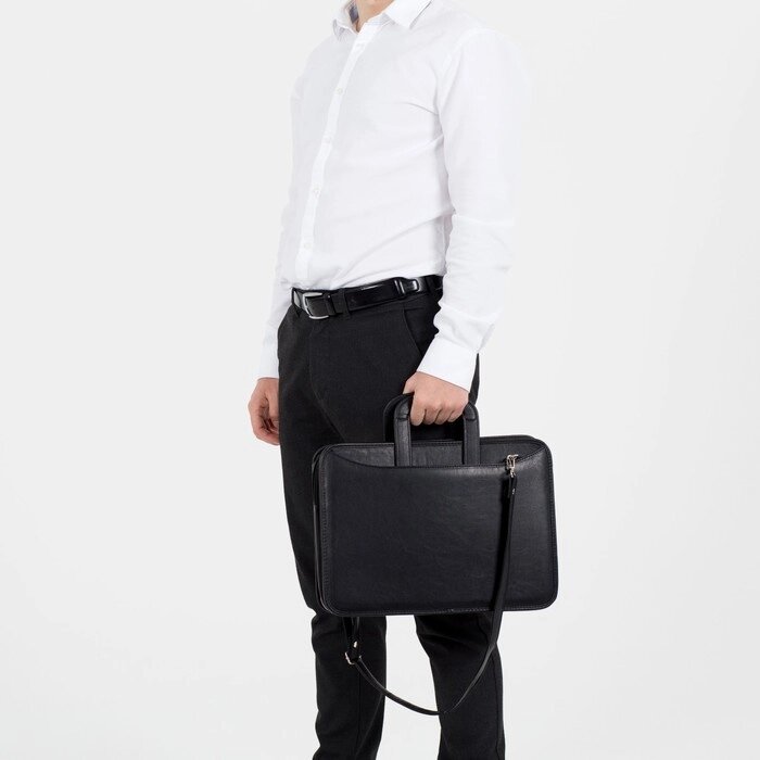 Сумка-портфель мужская на молнии, 2 отдела, длинный ремень, цвет чёрный