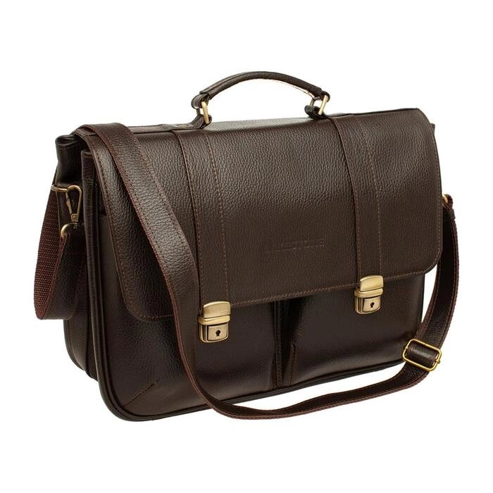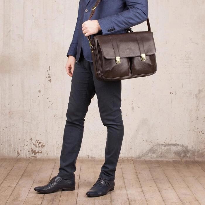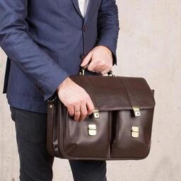 943027/BR Портфель Emerson Brown н/к, 2 отдела на клапане, цвет Коричневый 36х27х11см