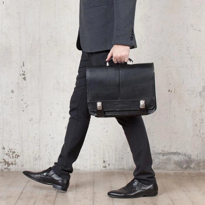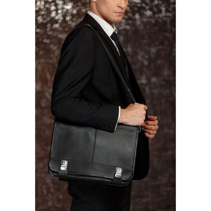 943029/BL Портфель Canford Black н/к, 2 отдела на клапане, цвет Черный 35х27х12см