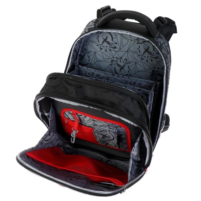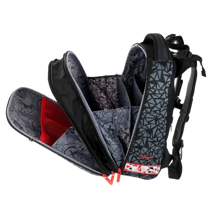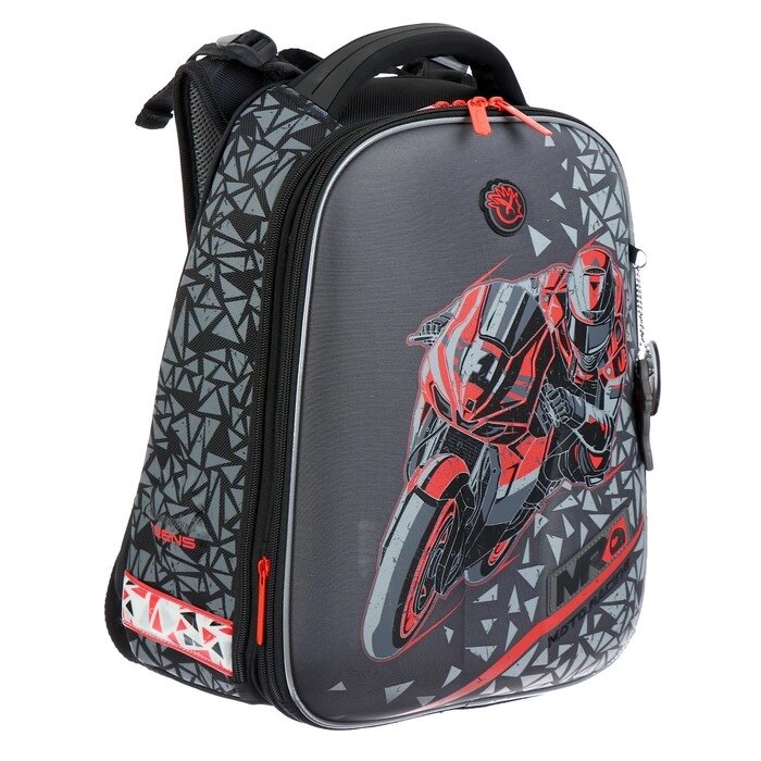 Рюкзак каркасный Hummingbird T, 37.5 х 29 х 19, для мальчика, Moto Racing, серый/красный