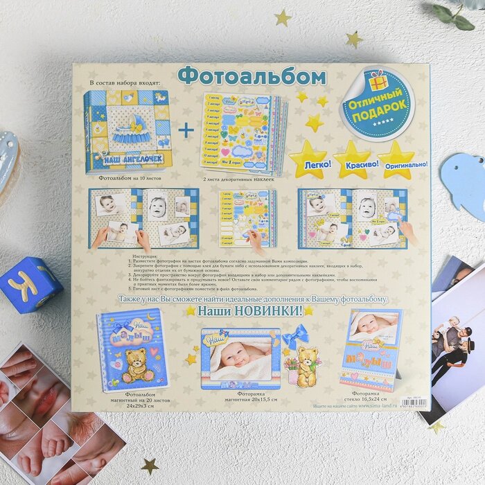 Фотоальбом с наклейками в подарочной упаковке "Наш ангелочек", 10 листов