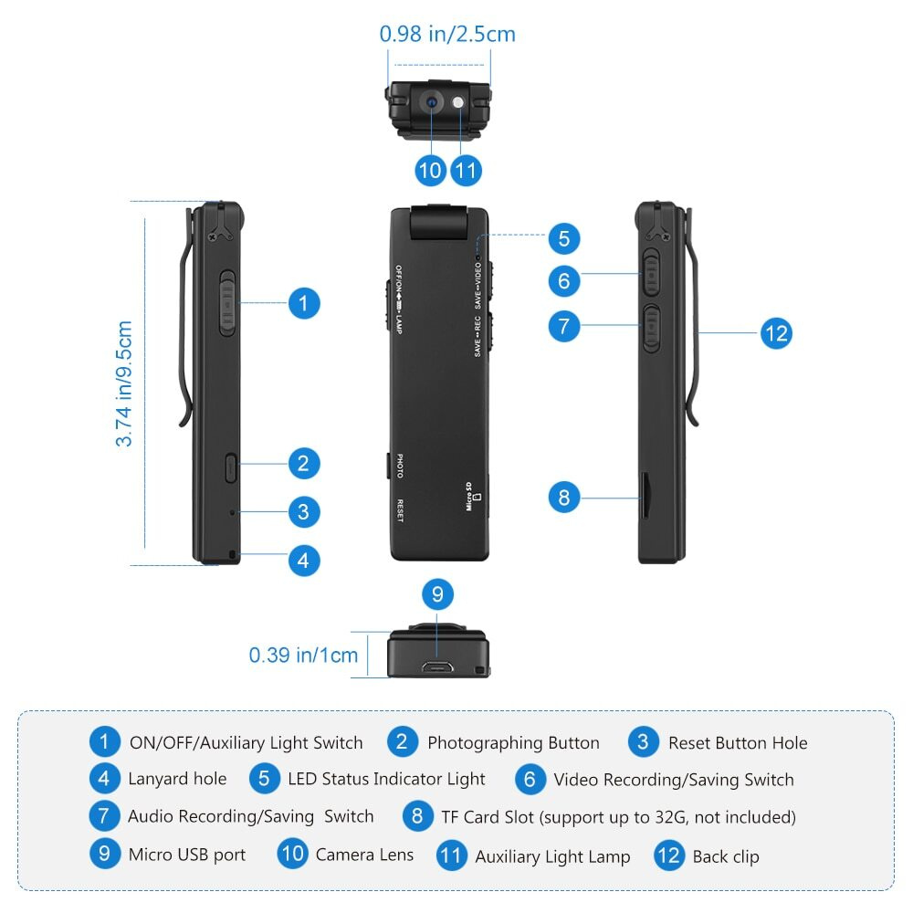 1080P Рекордер для камеры / Портативный Диктофон Камера SKUA1820-NO TF