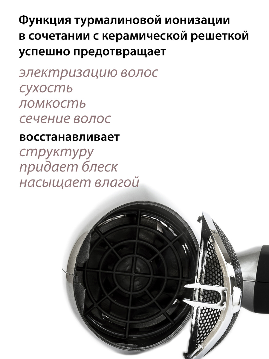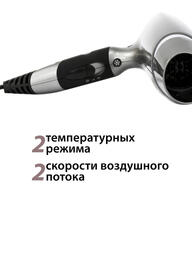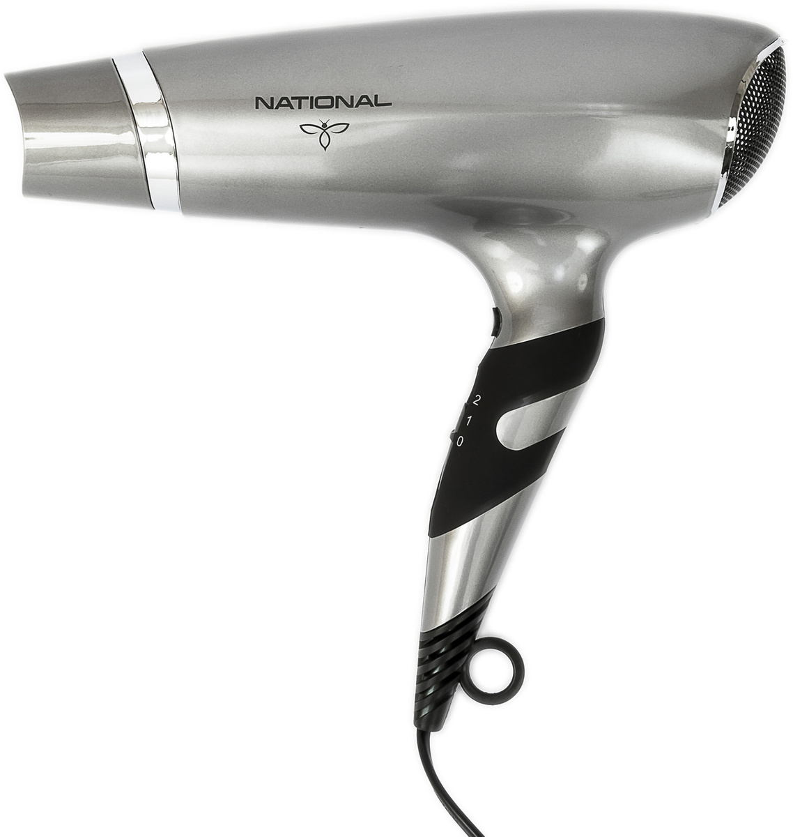 Фен для волос National 2000 Вт, с турмалиновой ионизацией и холодным обдувом, 2 скорости, 2 температурных режима, серебристый