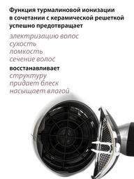 • Дополнительные режимы Холодный воздух, Ионизация, Турмалиновая ионизация