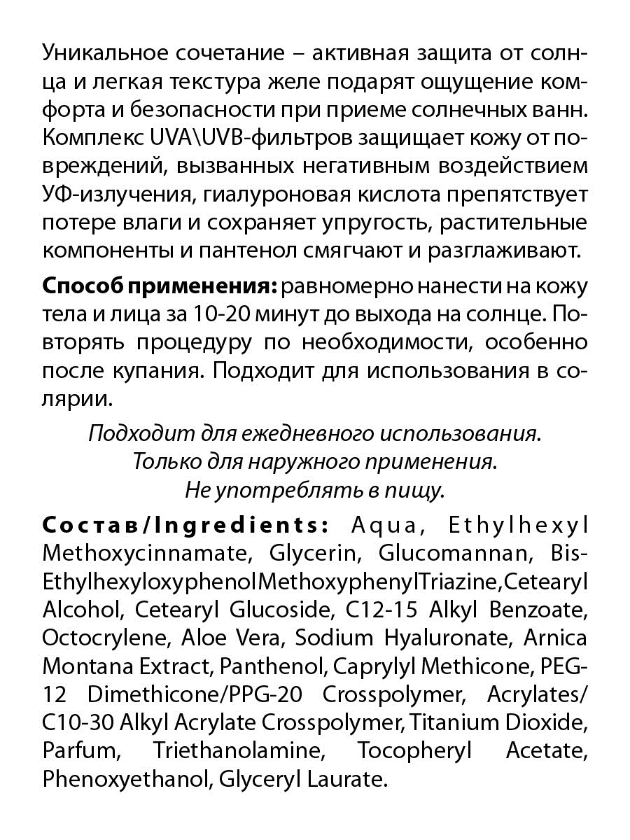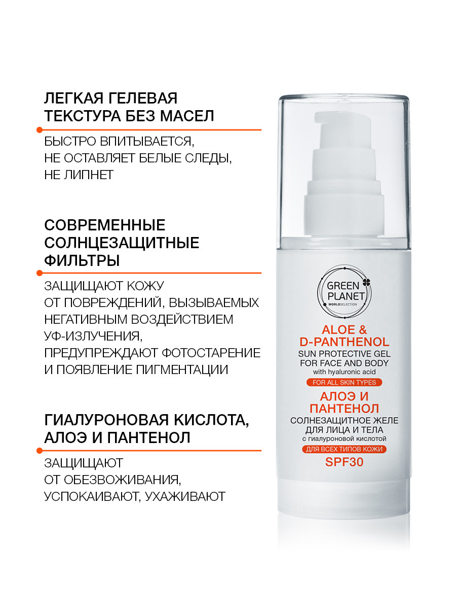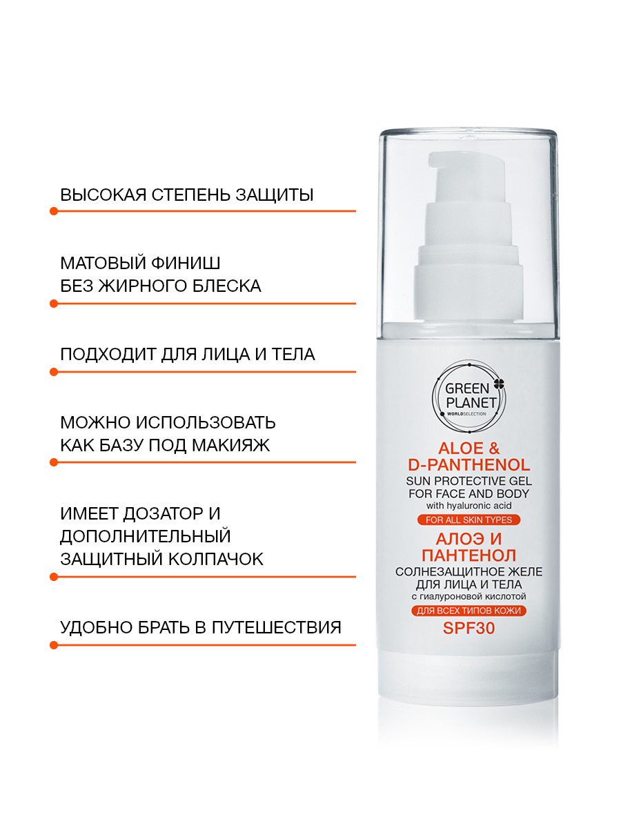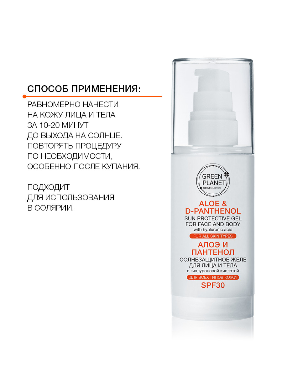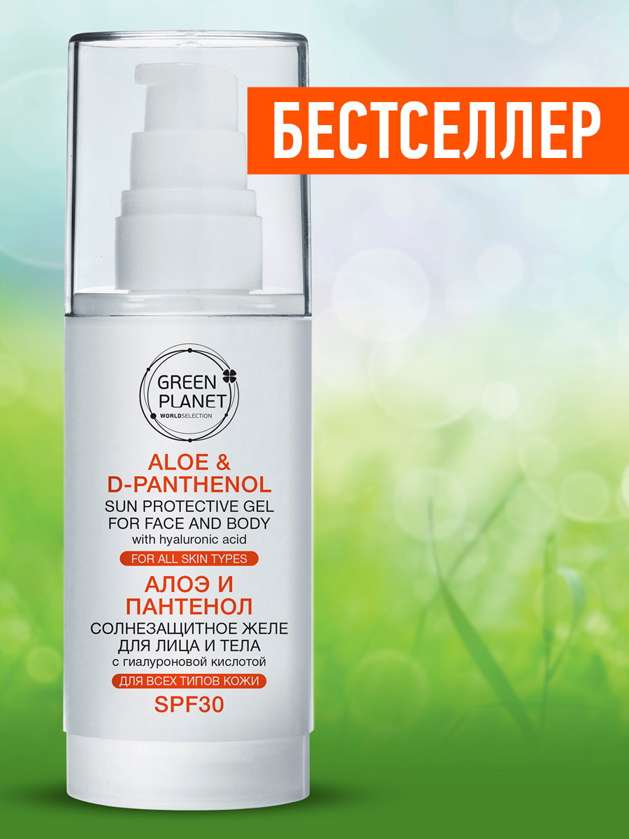 GREEN PLANET Солнцезащитное желе SPF30 для лица и тела с гиалуроновой кислотой, алоэ вера и пантенолом, 50 мл