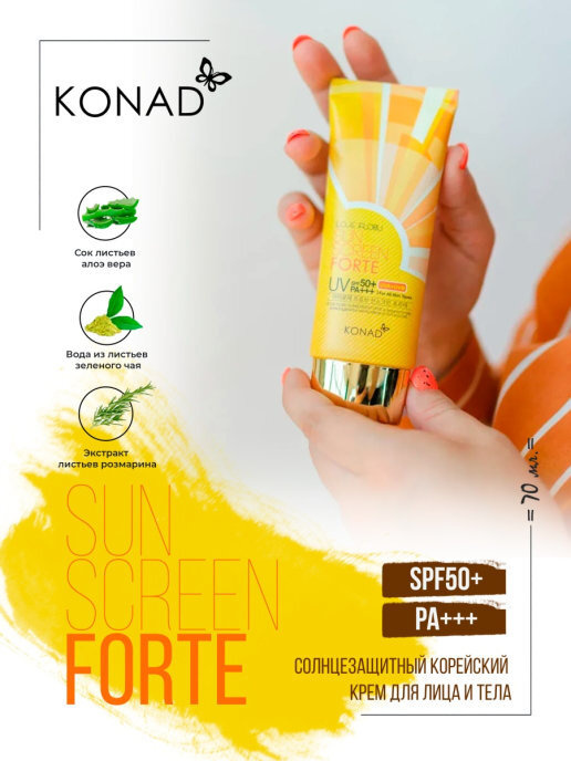 Konad Солнцезащитный корейский крем для лица и тела, SPF50+, PA+++, с алоэ вера и экстрактом зеленого чая / крем для лица с SPF / крем для тела с СПФ / ILOJE Flobu Sunscreen Forte 70 мл