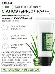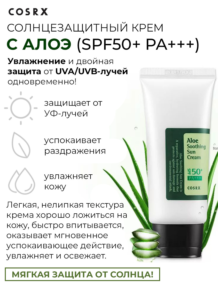 COSRX Крем для лица солнцезащитный с алоэ Aloe Soothing Sun Cream SPF50 PA+++ 50 мл, крем с SPF корея, санблок корея