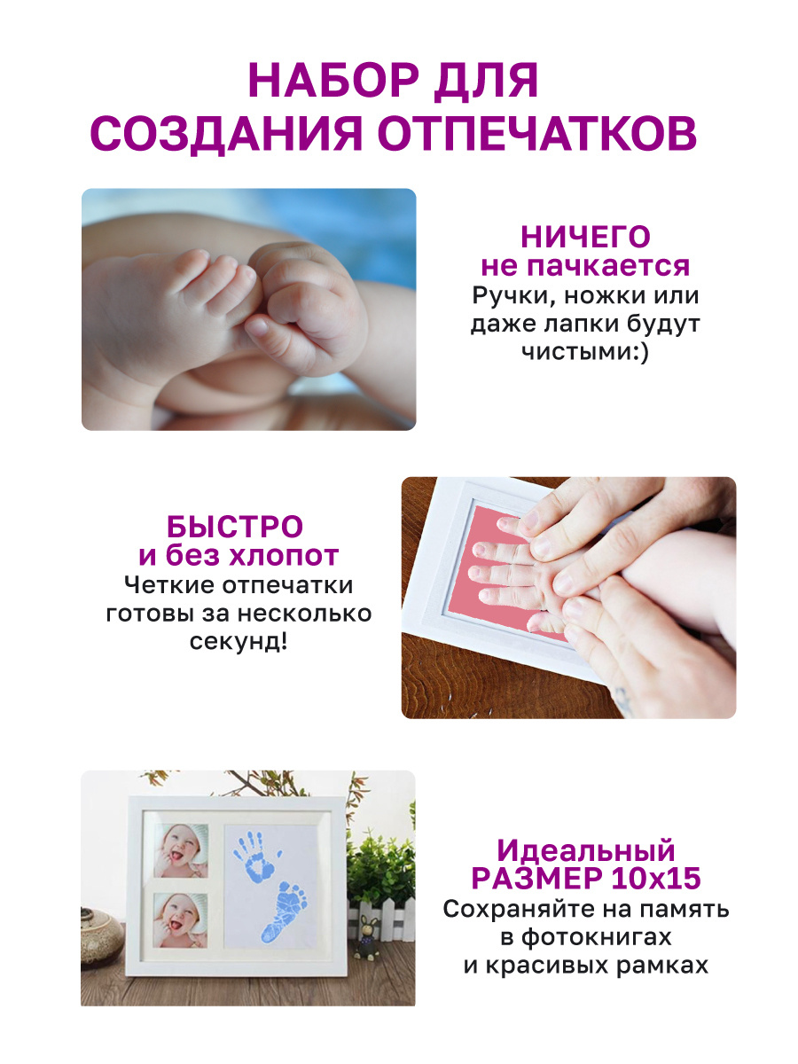 Набор для создания отпечатков ручек и ножек (без краски) +подарок, розовый 287366PINK