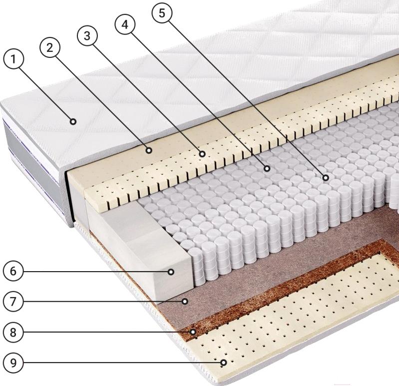 • Плотность пружин (шт/м²) 512