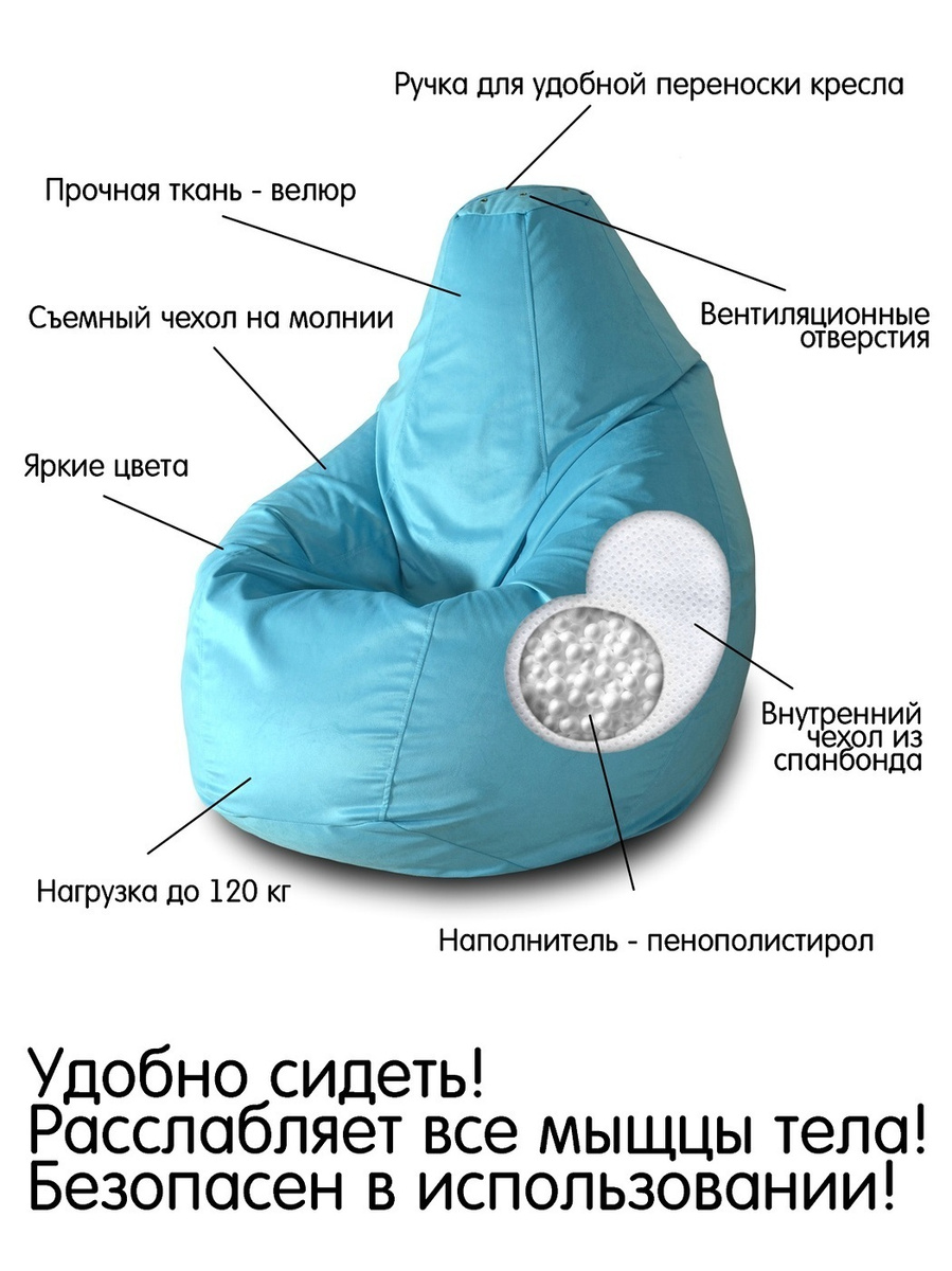 Кресло-мешок Пазитифчик Груша, Велюр натуральный, Размер XL