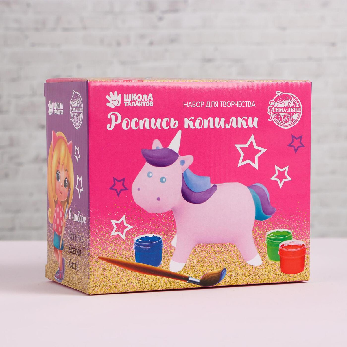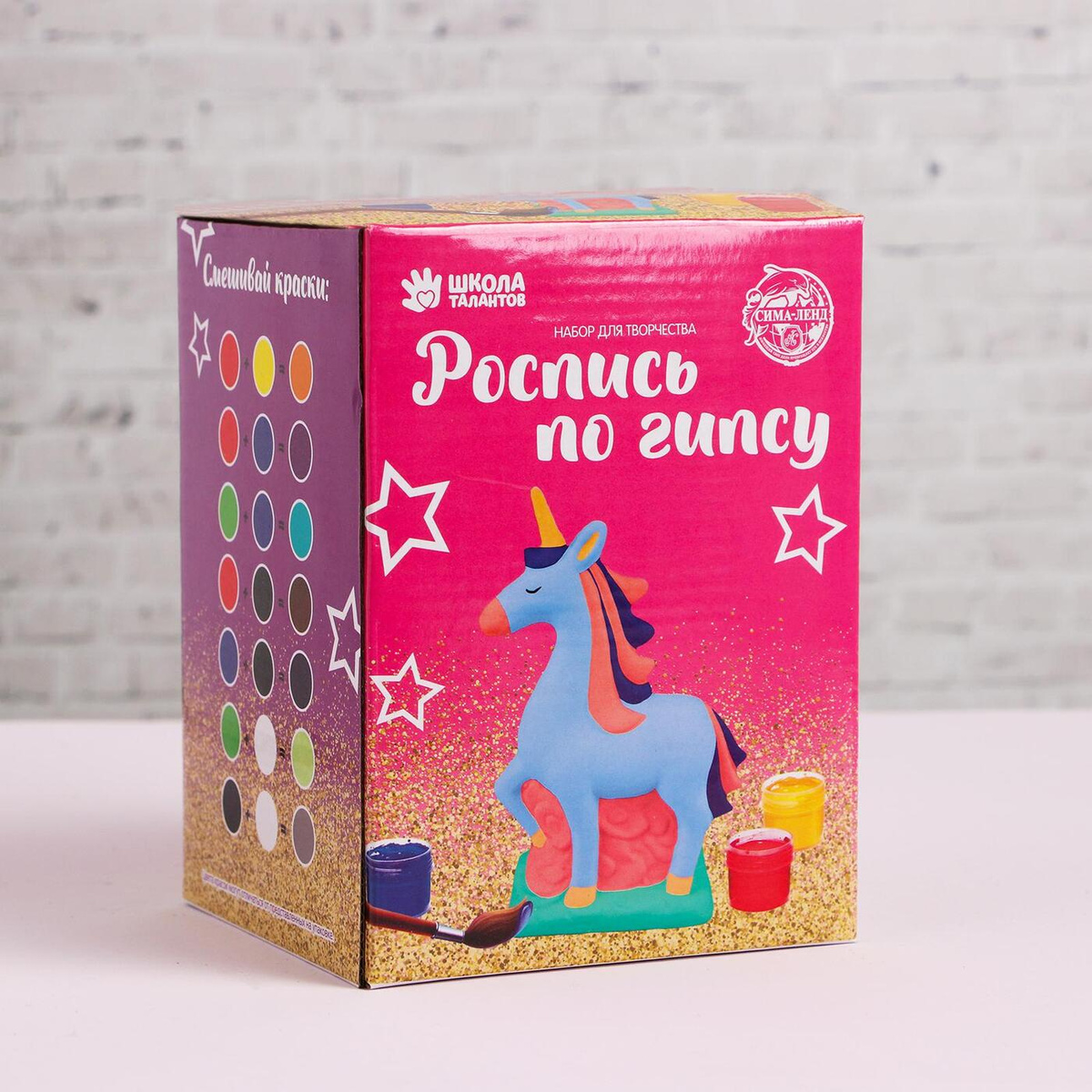 Роспись по гипсу Школа талантов "Единорог" краска 6 цветов по 2,5 мл, кисть 4979554