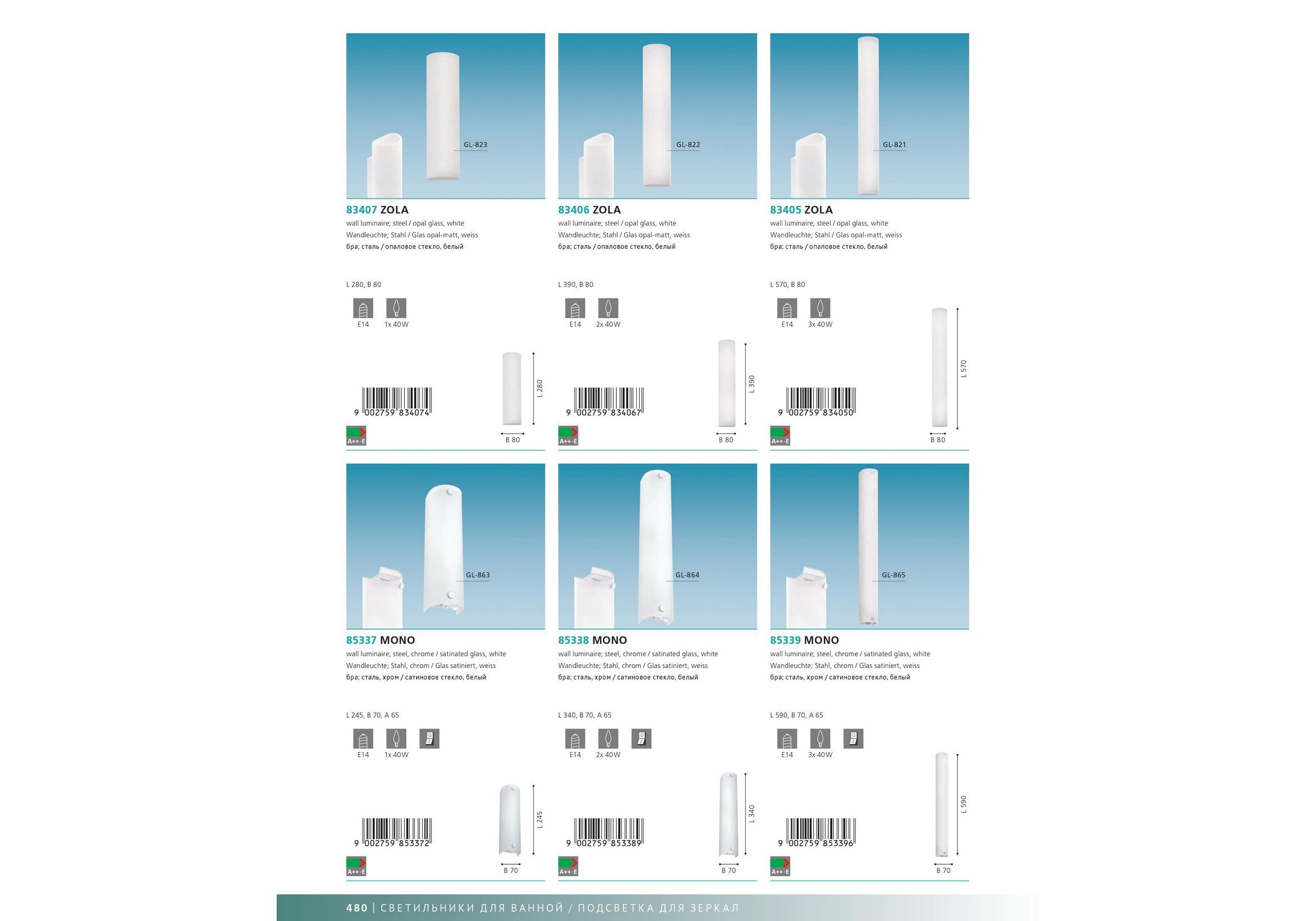 Описание товара: Светильник для ванной комнаты ZOLA 3х40W 83405 Eglo