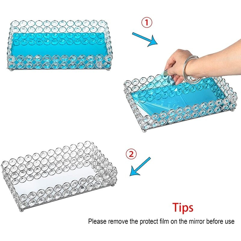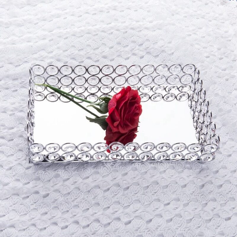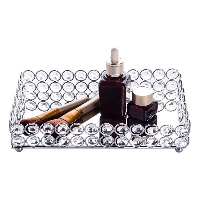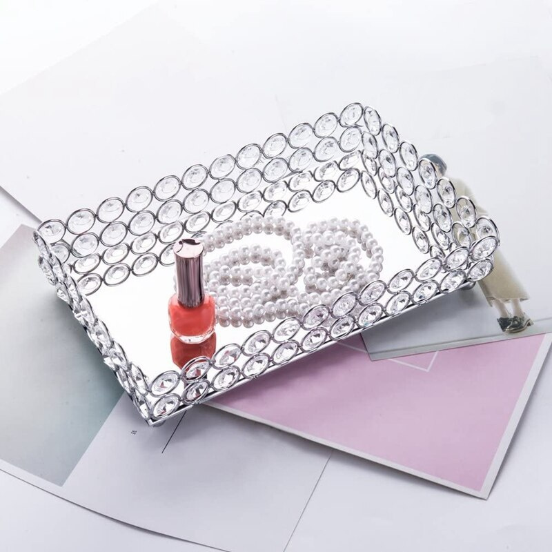 Хрустальный прямоугольный косметический поднос(серебристый)
