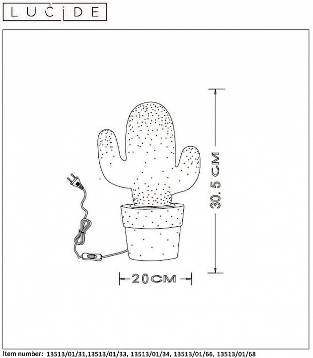 Дополнительная информацияПроизводитель Lucide. Масса брутто, кг - 1. Компоненты, входящие в комплект - провод электропитания с вилкой без заземления. Светоотдача, лм/Вт - . Основной цвет - желтый