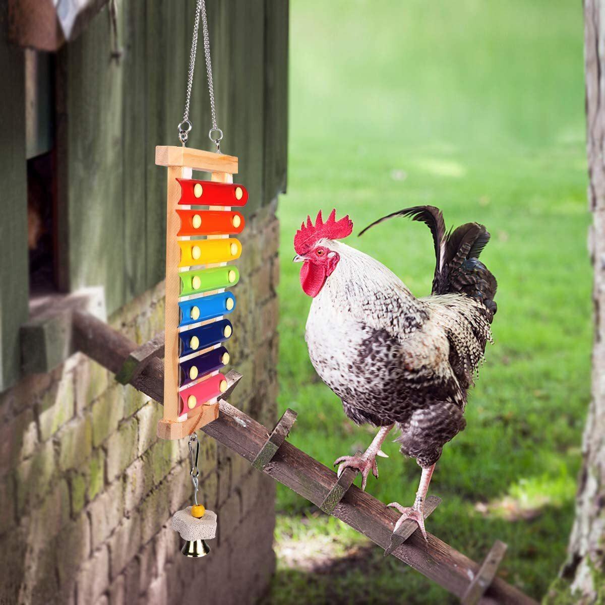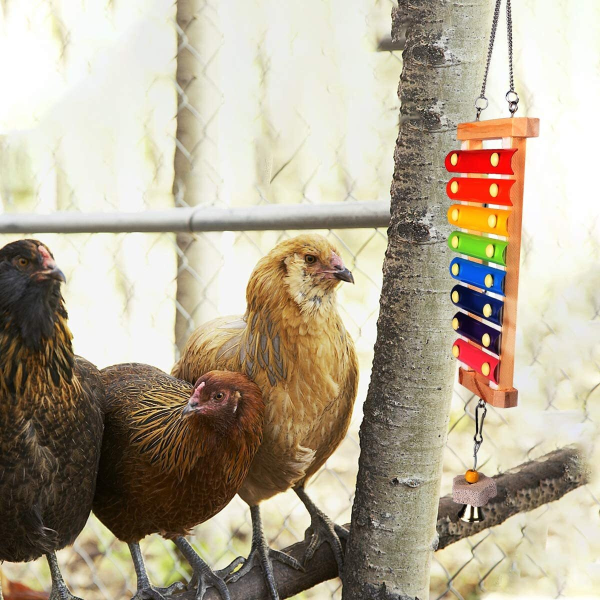 Игрушка-ксилофон для цыплят, деревянная игрушка для кур с металлическим ключом на 8 с колокольчиком
