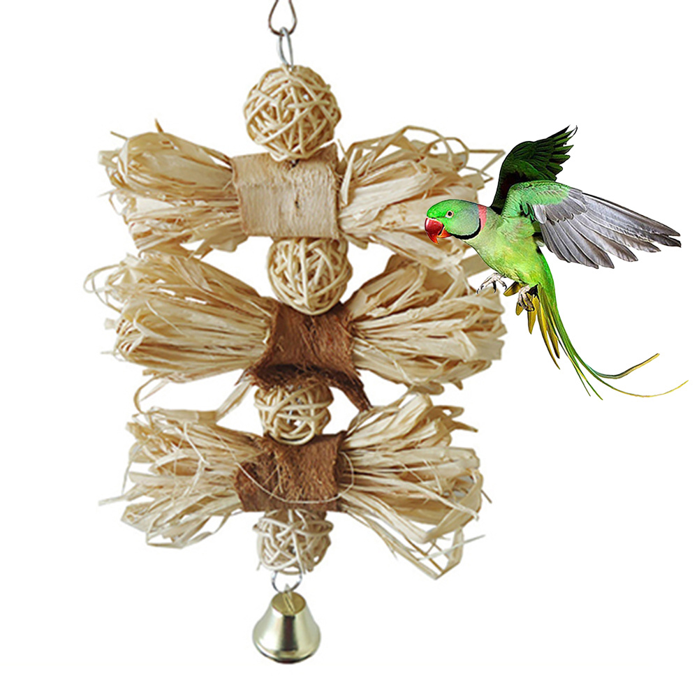 Bluelans Попугай, птица, жевать укусы, натуральный шарик из рафии, клетка для колокольчика, игрушки для домашних животных
