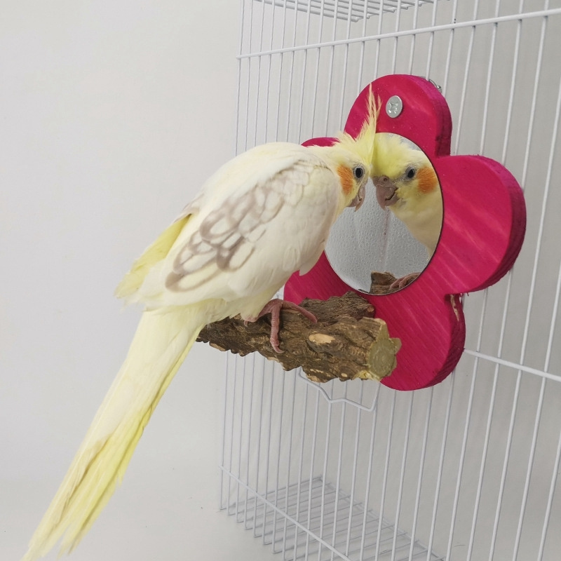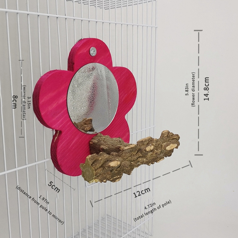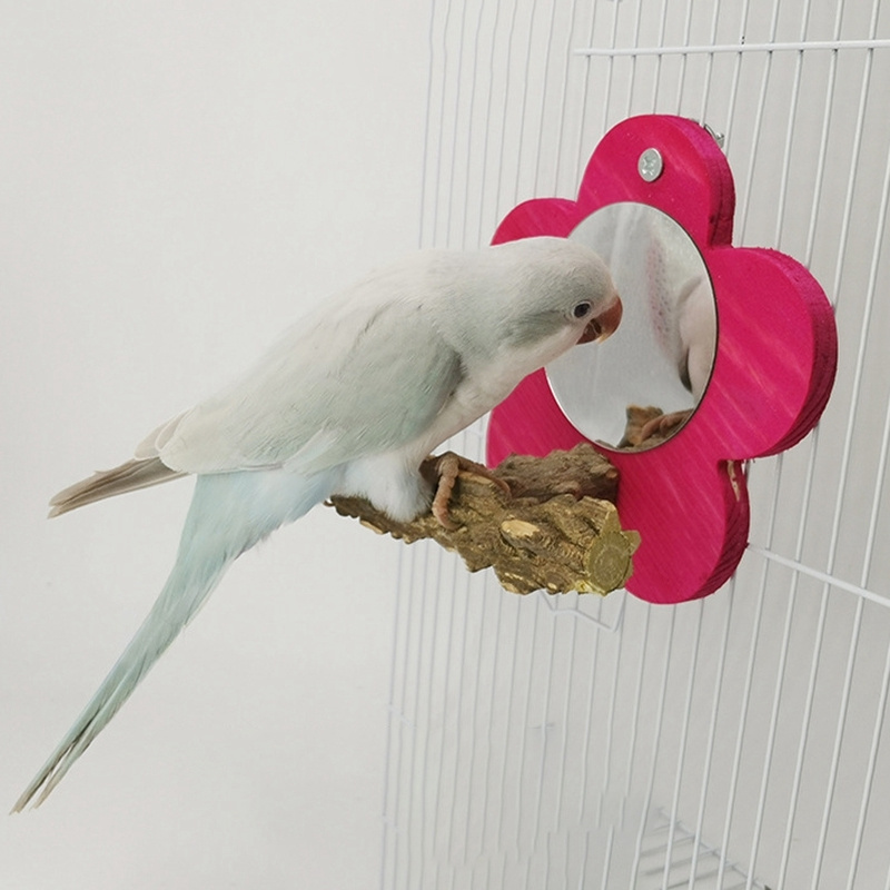 Зеркало для птиц, креативная форма в форме цветка, акриловое зеркало с попугаем, игрушка в клетке для птиц