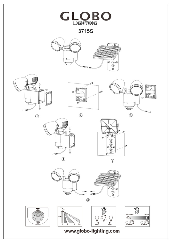 ПримечаниеРадиус действия датчика движения 8 м, высота действия датчика движения 2.5 м