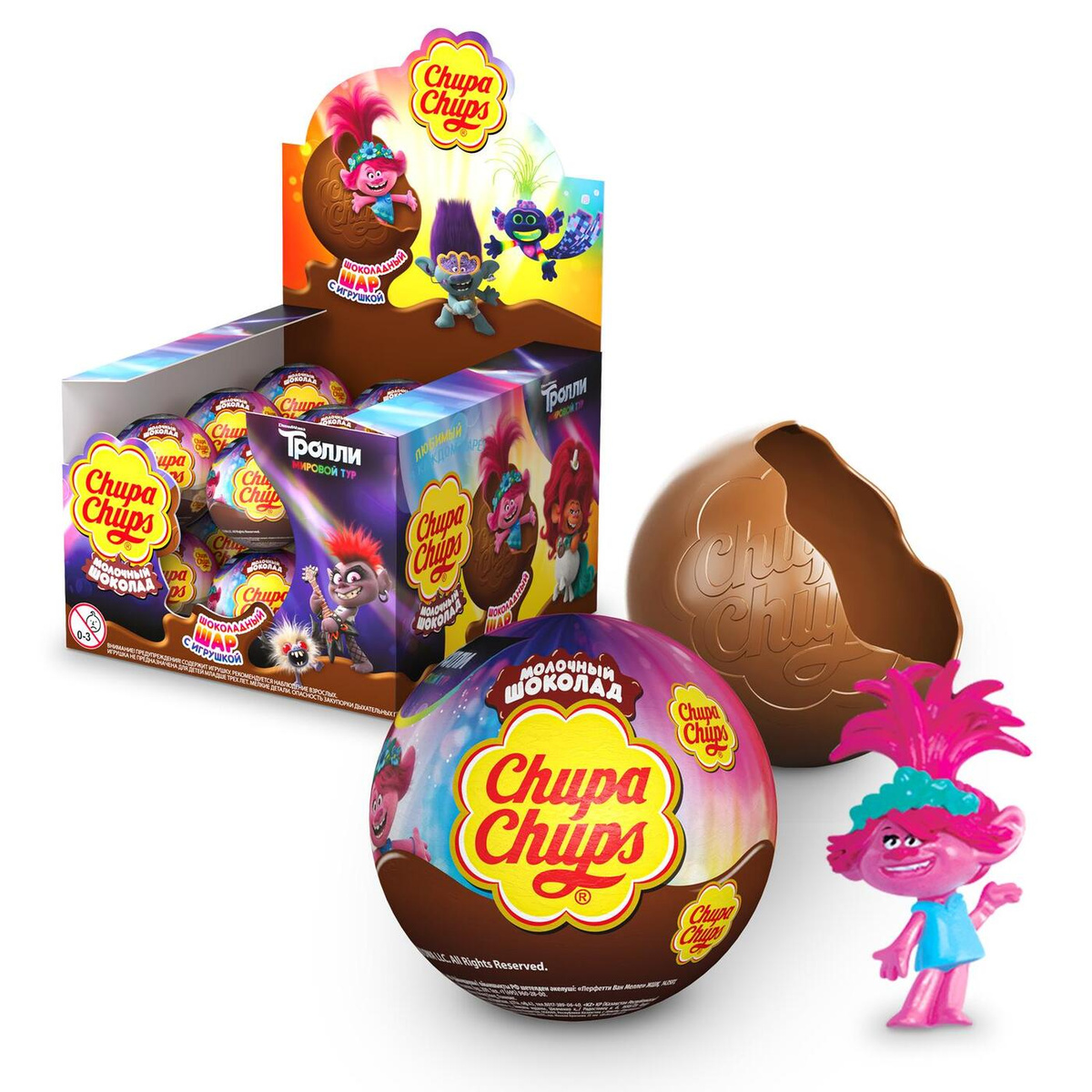 Шоколадный шар Chupa Chups с игрушкой внутри, "Тролли", 18шт. по 20г