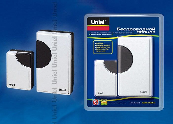 - Дополнительная информация Производитель Uniel. Необходимые компоненты - батарейка AA. Компоненты, входящие в комплект - нет. Напряжение на нагрузке, В - 12. Дополнительные параметры - радиус дейсвтия: 100 м, 32 полифонических мелодии. Светоотдача, лм/Вт - 0