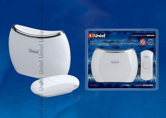 - Дополнительная информация Производитель Uniel. Необходимые компоненты - батарейка AA. Компоненты, входящие в комплект - нет. Напряжение на нагрузке, В - 12. Дополнительные параметры - радиус дейсвтия: 150 м, 32 полифонических мелодии. Светоотдача, лм/Вт - 0