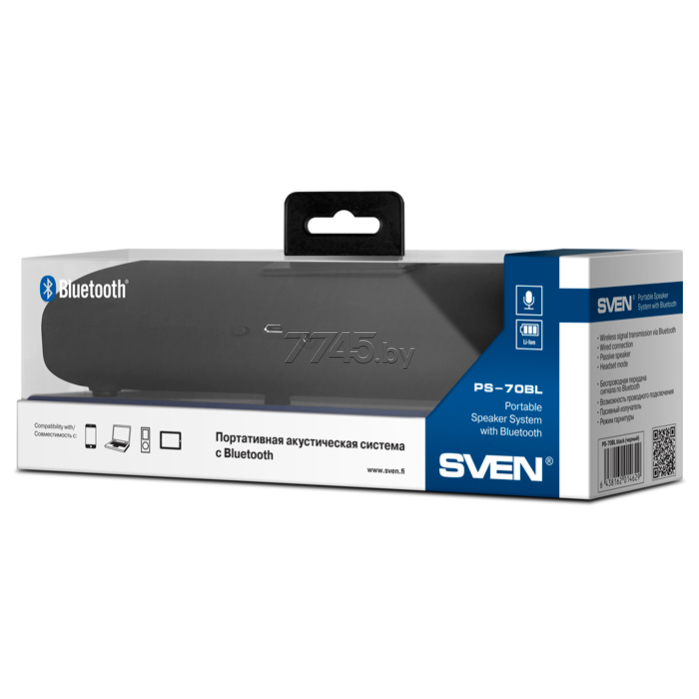 SVEN PS-70BL станет отличным решением для практичных меломанов. Небольшой вес позволяет без лишних сложностей брать ее собой в поездки, походы или просто на прогулку. PS-70BL легко поместится в кармане или небольшой сумке. При таких скромных габаритах играет модель по-настоящему громко. Благодаря встроенному пассивному излучателю SVEN PS-70BL выдает глубокий и мощный бас. С портативной акустикой от SVEN вы с легкостью сможете устроить импровизированную дискотеку на природе. При этом цена акустики не будет ударом для бюджета – это действительно практичная покупка, которая стоит своих денег. Прорезиненный корпус приятен на ощупь и не скользит.