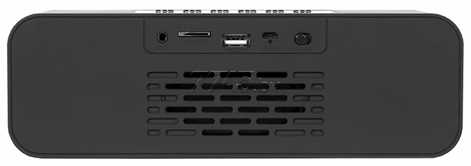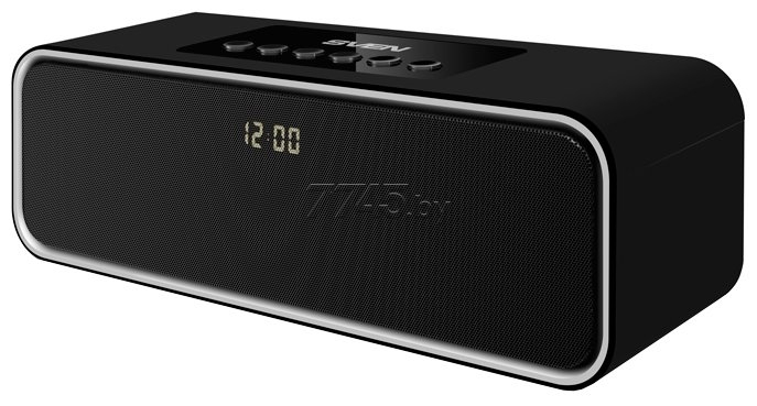 Беспроводная колонка SVEN PS-175 Black отлично справляется с музыкой самых разных направлений. Модель способна воспроизводить музыкальные файлы практически с любых популярных носителей – она поддерживает беспроводную передачу сигнала по Bluetooth, читает карты памяти microSD и USB flash. Кроме того, ее можно подключить к источнику звука с помощью кабеля. Есть встроенный FM-приемник. На лицевой панели акустики имеется удобный LED дисплей. Она вполне способна заменить часы на прикроватной тумбочке. SVEN PS-175 не просто показывает время – у этой модели есть будильник. Владелец акустики может не только выбрать его звук из стандартного репертуара настроек, но еще и записать собственный сигнал для пробуждения на флешку и просыпаться в заданный час по персональному звонку. Корпус акустики покрыт прорезиненным материалом.