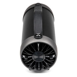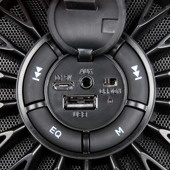 Портативная акустическая система со встроенным аккумулятором. Мощность 12 Вт. Динамики 3" (10 Вт) и 1.4" (2 Вт). Может воспроизводить звук через Bluetooth соединение, с флэш накопителей, подключенных через USB порт и с любого внешнего источника, подключенного к разъёму AUX. Встроенный FM радиоприёмник. Время работы от аккумулятора 6 часов