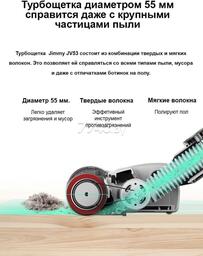 Пылесос аккумуляторный JIMMY JV53 с технологией двойной циклонной фильтрации обеспечивает более мощное всасывание и более эффективную очистку. Эффективность удаления пыли может достигать 99%. Различные виды аксессуаров удовлетворят любые потребности при уборке вашего дома или машины. За счет удобного угла наклона пылесоса, а также небольшого веса, прибор легко удерживать и использовать. Очистка мусоросборного контейнера осуществляется одним нажатием. Аккумулятор позволяет использовать прибор в течение 45 мин в обычном режиме. За это время можно пропылесосить 350м2. Этого достаточно, чтобы очистить большой дом без дополнительной подзарядки.