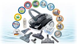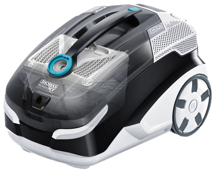 Пылесос THOMAS Vestfalia XT с функциями сухой и влажной уборки, а также сбора пролитой воды. Вместо мешка используется инновационная технология – система очистки воздуха Aqua-Box. Перед уборкой в контейнер наливается литр воды, а когда уборка окончена, вода со всем собранным мусором выливается. Благодаря особой конструкции Aqua-Box мощность всасывания во время уборки постоянно высокая, поэтому гарантирован отличный результат. 4-х ступенчатый электронный регулятор мощности поможет подобрать нужную мощность всасывания для различных поверхностей.
