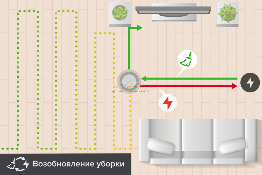 Робот-пылесос составляет подробную карту, учитывающую габариты помещения и особенности интерьера. Компактные размеры позволяют выполнить уборку практически в любых труднодоступных уголках квартиры. В случае разряда аккумулятора в процессе уборки, устройство автоматически возобновит работу и очистит оставшуюся площадь после зарядки. В модели предусмотрена трехуровневая регулировка мощности всасывания. Можно выбрать один из трех уровней подачи воды в зависимости от типа напольного покрытия и вида загрязнения.