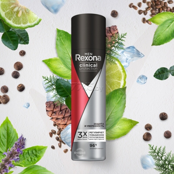 Антиперспирант аэрозольный REXONA Men Clinical Protection Защита и уверенность 150 мл (8714100835470) беспрецедентная защита от пота и неприятного запаха, чтобы быть уверенным в каждом дне и быть готовым ко всему. Rexona разработала революционную технологию совершенной защиты Defence+, которая образует микропленку на поверхности кожи, обеспечивая 96 часов непрерывной защиты от пота и запаха. Защита стала в 3 раза эффективнее базового антиперспиранта. Пот внутри - сухость снаружи. Максимальная защита в экстремальных ситуациях (стресс, жара, спорт). Мгновенно высыхает, не требует повторного нанесения в течение дня и подходит для ежедневного использования. Почувствуй мощный и энергичный аромат. Бергамот, черный перец, базилик и озоновые ноты используются для придания морозной бодрящей свежести, а выраженная мужественность при этом поддерживается, благодаря эффектным нотам натуральной кожи, пачули, кедра и сандала.