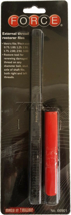 Напильник для реставрации метрической резьбы FORCE (66901) применяется для реставрации внешней левой и правой резьбы на болтах, шпильках и т.д. Подходит для резьбы с шагом 0.75, 1, 1.25, 1.5, 1.75, 2, 2.5, 3 мм.