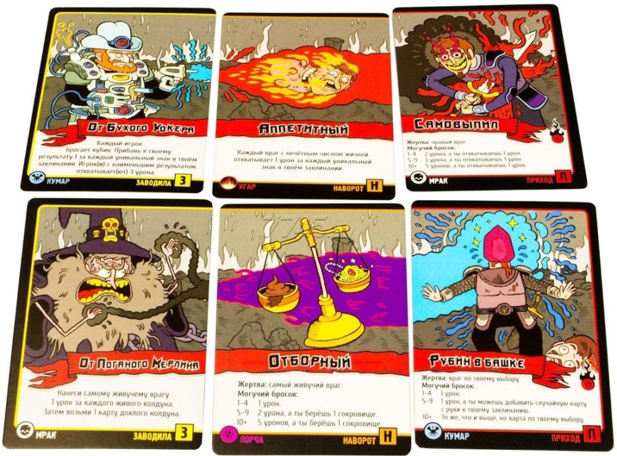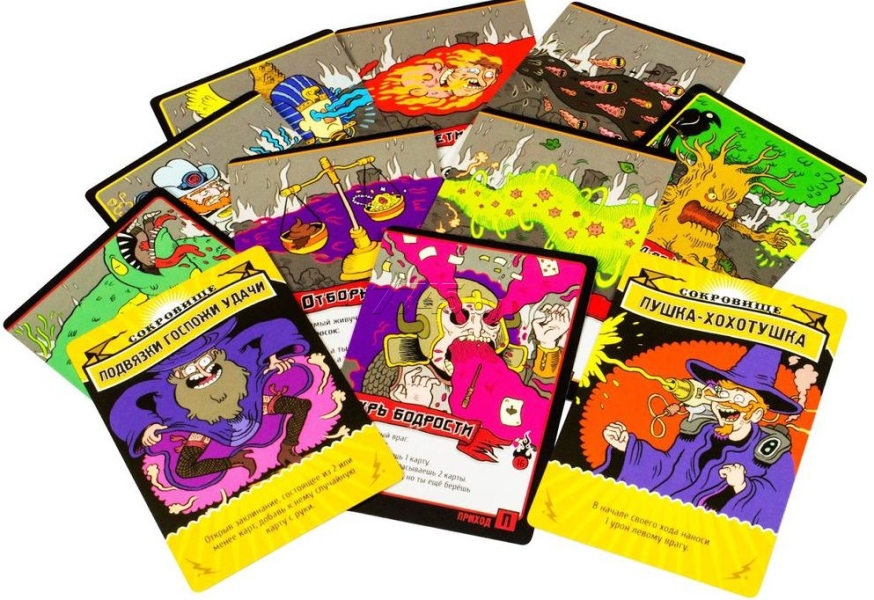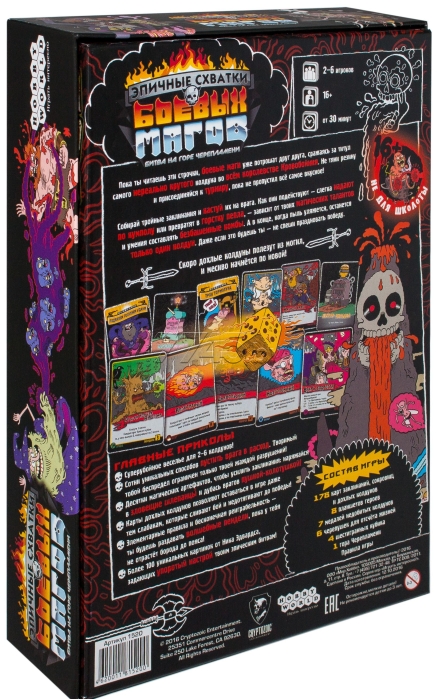 Игра настольная HOBBY WORLD Эпичные схватки боевых магов Бесчинство в замке Спрутобойни (1633) ‒ это веселая игра, которая отлично подойдет на вечеринке дружной компании друзей. В это игре все играют собственно за боевых магов, очень боевых и очень безумных магов. Нужно уничтожить всех противников, пока они не уничтожили вас, все просто. В этой коробке новые герои, новые варианты правил, новые заклинания, но все тот же старый градус безумия и угара. В настольную игру можно играть отдельно, а можно смешать ее с базовой игрой и получить еще больше упоротых карточек.