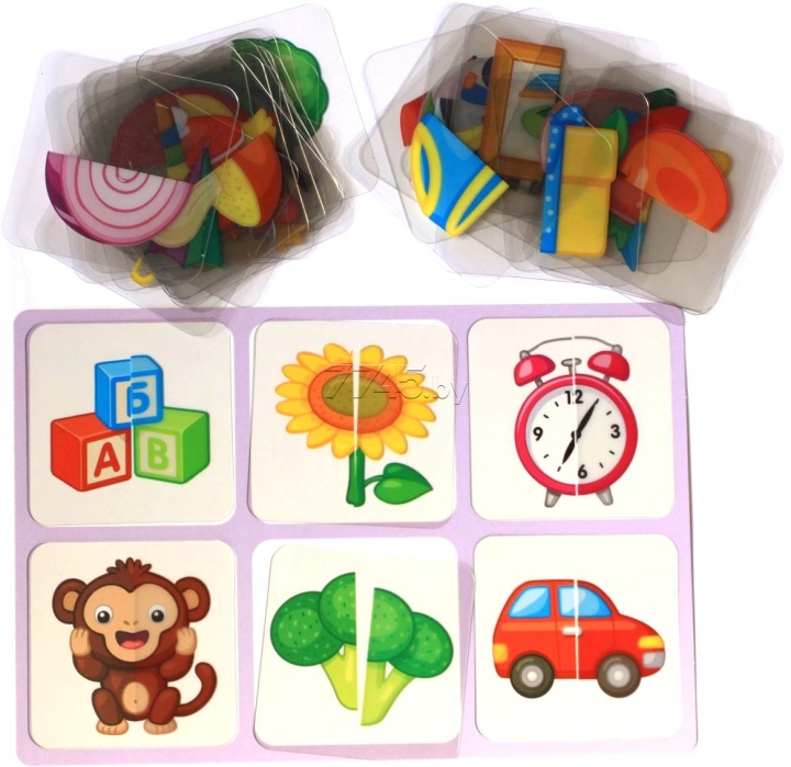 Лото ДЕСЯТОЕ КОРОЛЕВСТВО 10kor Plastic Половинки (04015) развивает внимательность и логику, а также стимулирует развитие реакции и мелкой моторики рук у детей от 3 лет. Состав игры: игровые поля (14,5х21,5 см) — 6 шт., прозрачные карточки (6,5х6,5 см) — 36 шт.