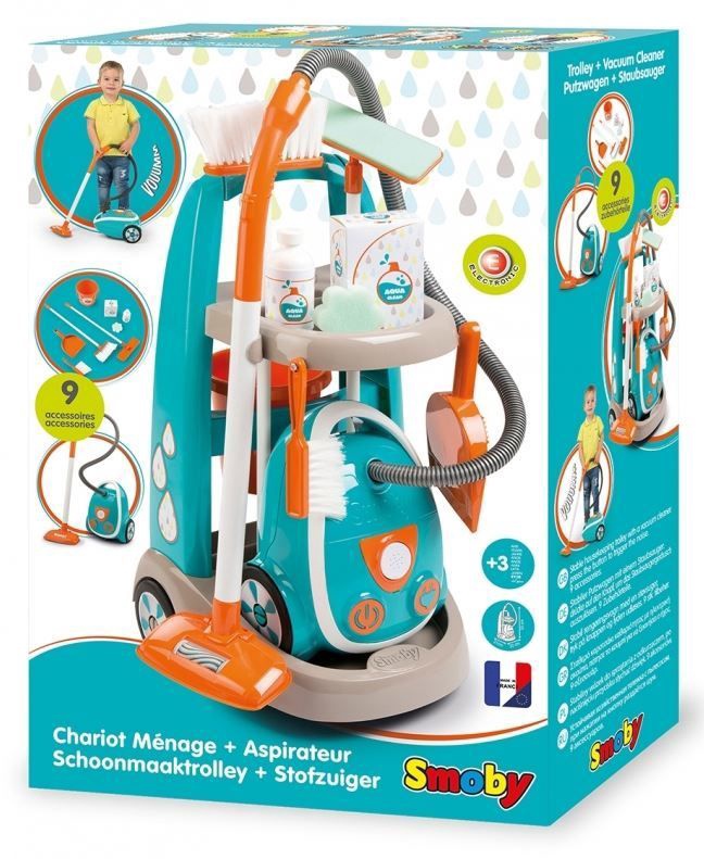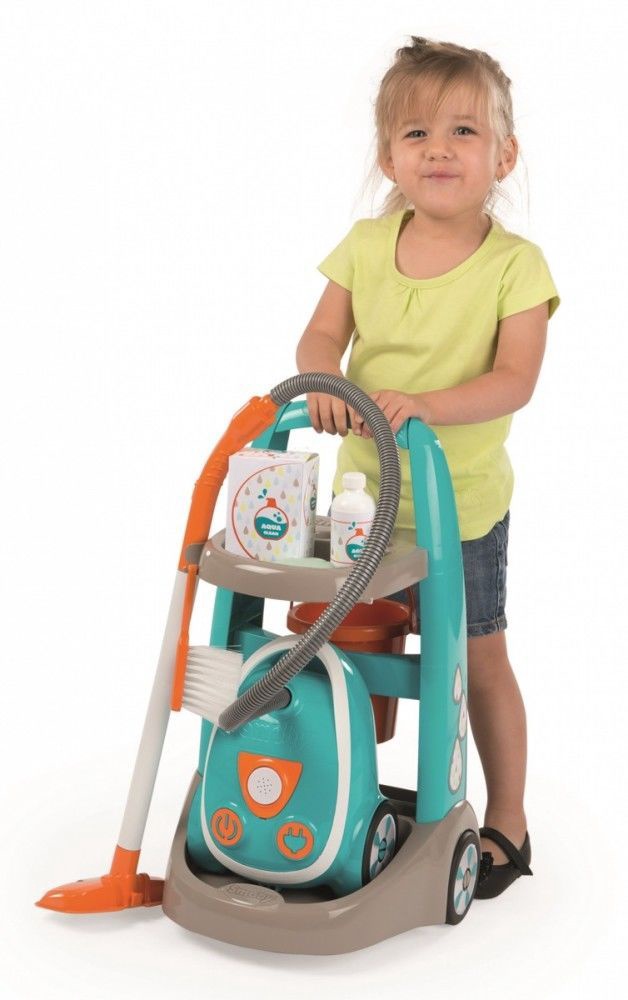 • Дополнительная информация В комплекте: тележка с пылесосом, совок, веник, щетка, швабра, ковш и моющие средства