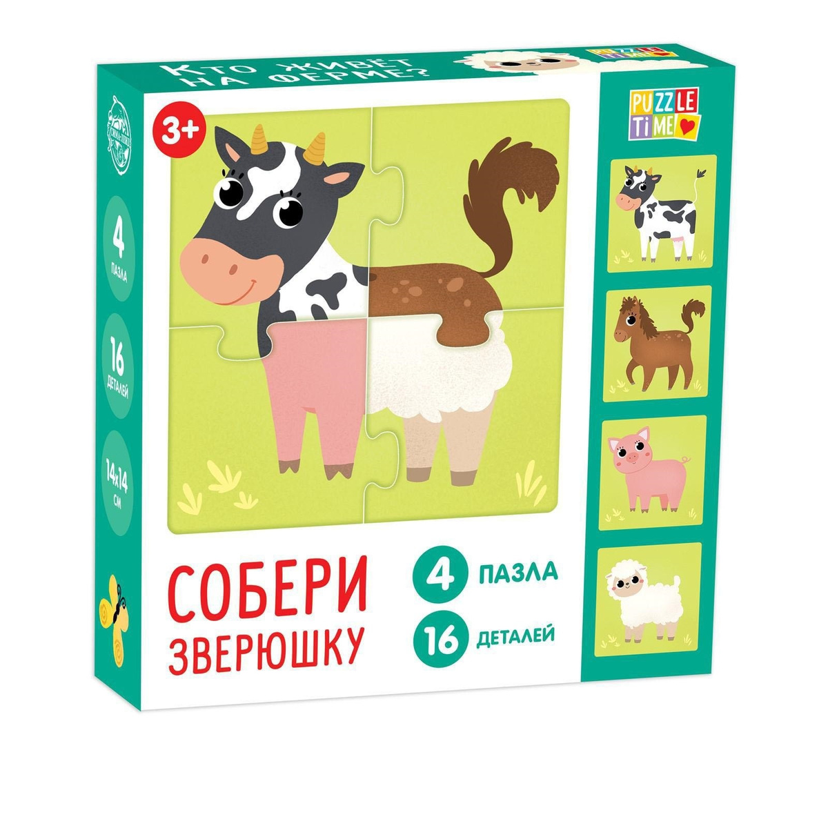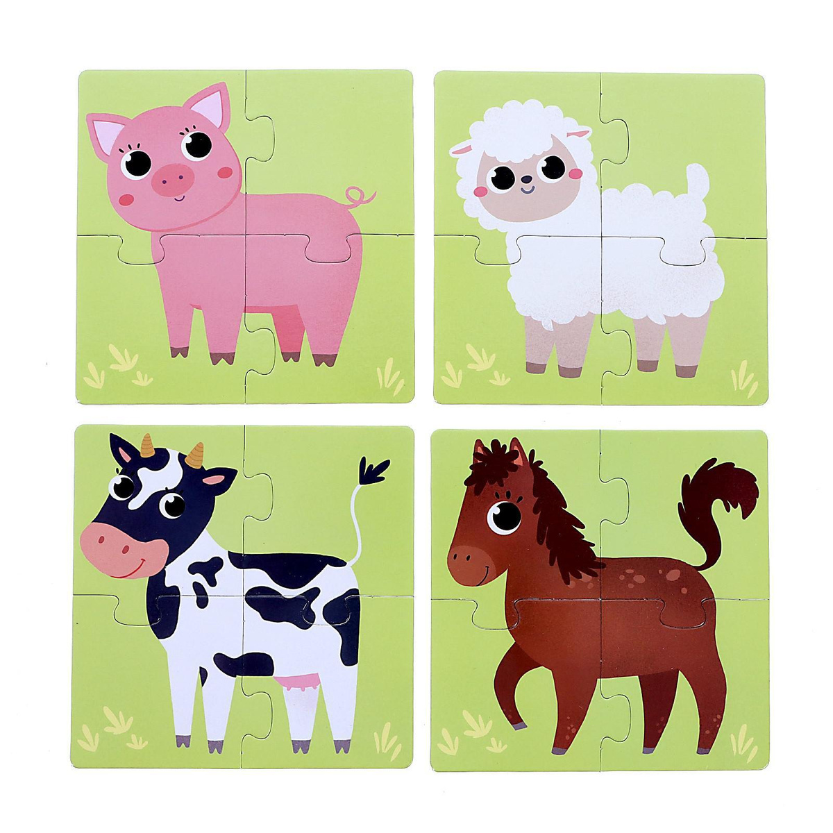 Пазлы 4 в 1 "Кто живёт на ферме?"